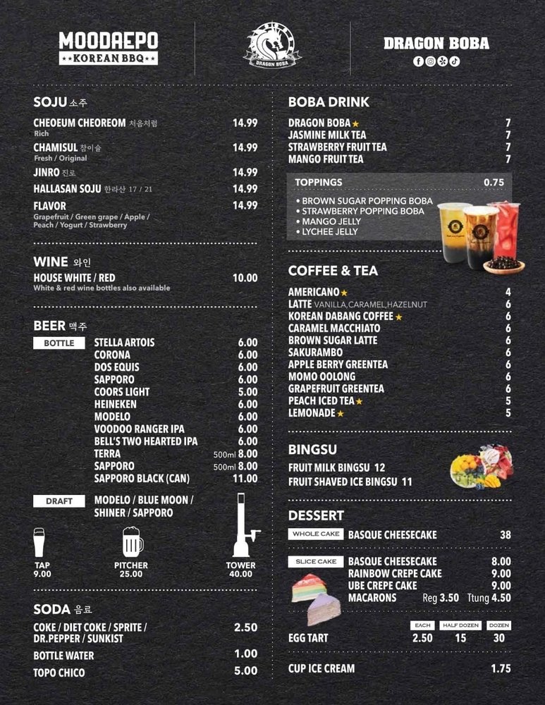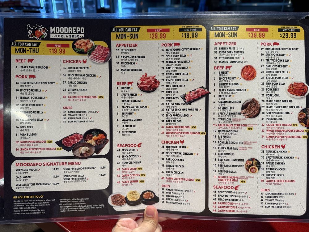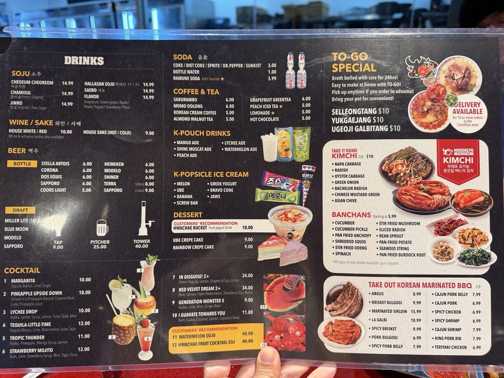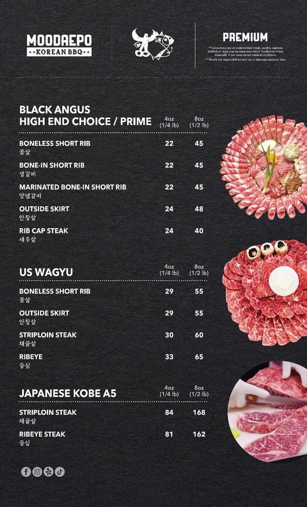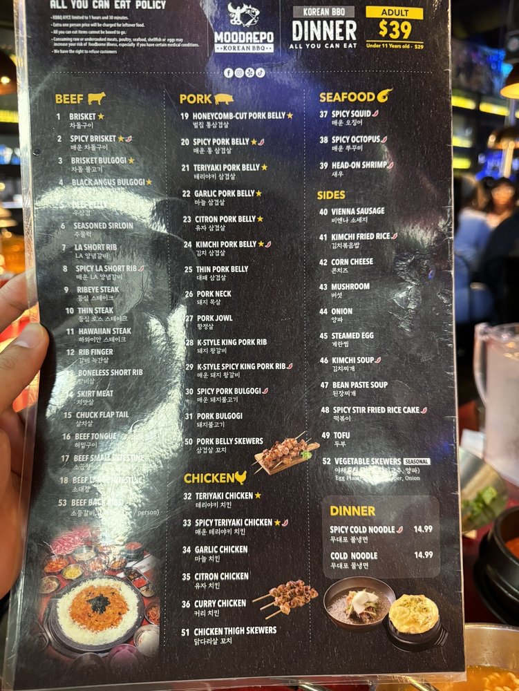 Introducing the menu at Moodaepo Korean BBQ: Located in Carrollton, TX, this casual yet trendy spot offers robust flavors and generous portions. Known for its all-you-can-eat Korean BBQ, Moodaepo impresses with high-quality cuts of meat, including unlimited short rib/kalbi options. Customers rave about the quick service and diverse menu offerings, with favorites like spicy king rib and beef tongue. The ramen bar adds a unique touch, allowing diners to customize their own noodles. The ambiance is lively, with games and entertainment options. While some reviewers note inconsistencies with side dishes, the standout dishes like malnourished and the interactive ramen station make up for any shortcomings. Overall, Moodaepo stands out as a top choice for Korean BBQ, combining excellent food, fun atmosphere, and attentive service.